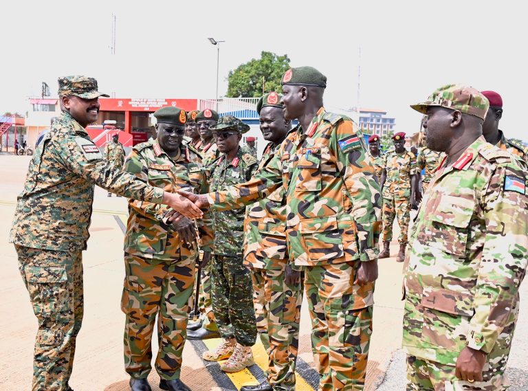 After meeting President Kiir, the CDF visited the tactical headquarters of Operation Mlinzi Wa Kimya, a Swahili phrase meaning “Silent Guardian,” where he interacted with Ugandan troops and commanders overseeing the mission.