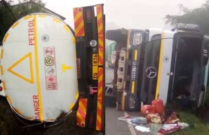 The Police in Kabale registered a minor road accident that involved a fuel tank truck and a Jaguar bus at Kyonyo Trading Centre along Kabale – Katuna road today morning.