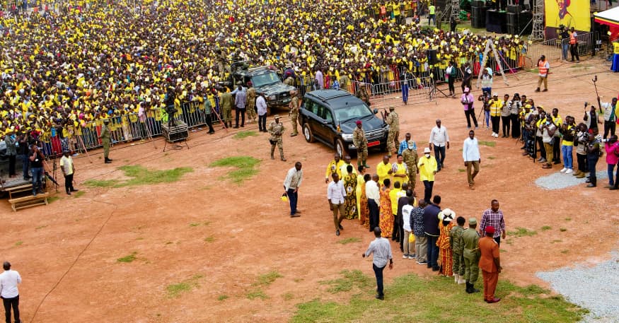 Museveni arriving at Kibale Play Grounds in Rakai District