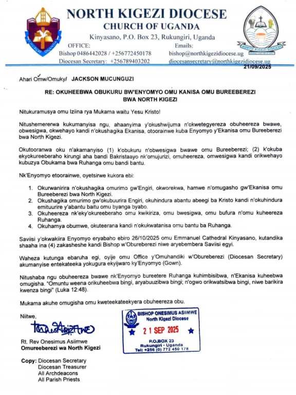 “I have read every word of this appointment letter more so being in my African traditional good language (Runyankore/Rukiga), and it continues to teach me to re-examine both my public and private lifestyle choices, for they directly affect the spiritual bloodstream of the Church, indeed, as Scripture says, whoever puts on flesh is a sinner so I will keep revising myself daily,” Mucunguzi emphasized.
