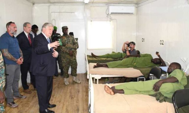 Ambassador Riley made the remarks during a visit to the UPDF Sector One Level II Hospital in Mogadishu, where he commended the soldiers for their recent achievements, particularly in operations in Bariire.